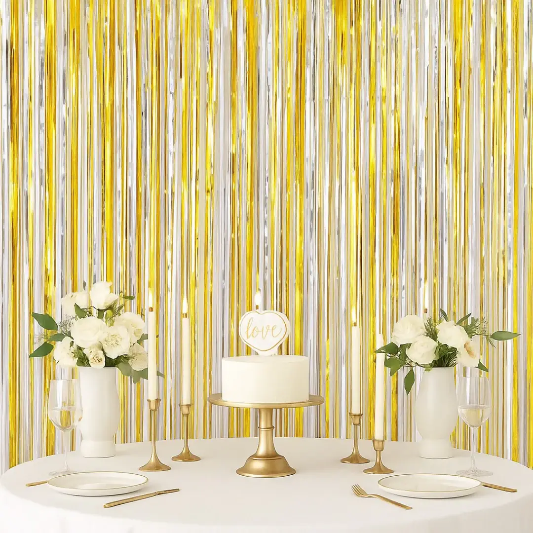 Transform your space into a stunning celebration setup with this premium Foil Fringe Curtain. Designed to bring sparkle and style, its metallic strands reflect light beautifully, creating a vibrant and eye-catching backdrop for any occasion.